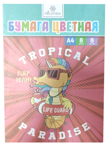 —Бумага цветная газетная 'Attomex. Морской конек' A4 (200x280 мм), 50 г;м², A4, 8 цв, 8 л, 8114201
