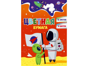 Цветная бумага , А4 , 'Дружба в космосе' , двусторонняя , 16 листов , 8 цветов, 16-4443