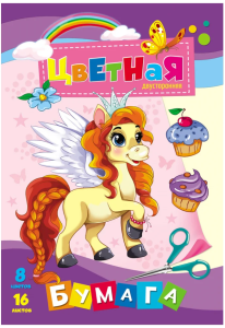 —Цветная бумага А4 Prof-Press Лошадка и пирожные 16л 8 цв двусторонняя 16-9516