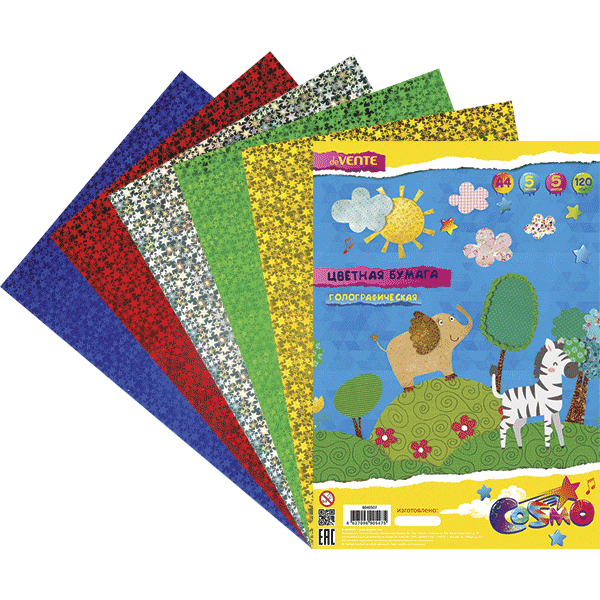 —Бумага цветная голографическая A4 'deVENTE' 120 г;м², 5 цв, 5 л, пластиковый пакет, 8040507