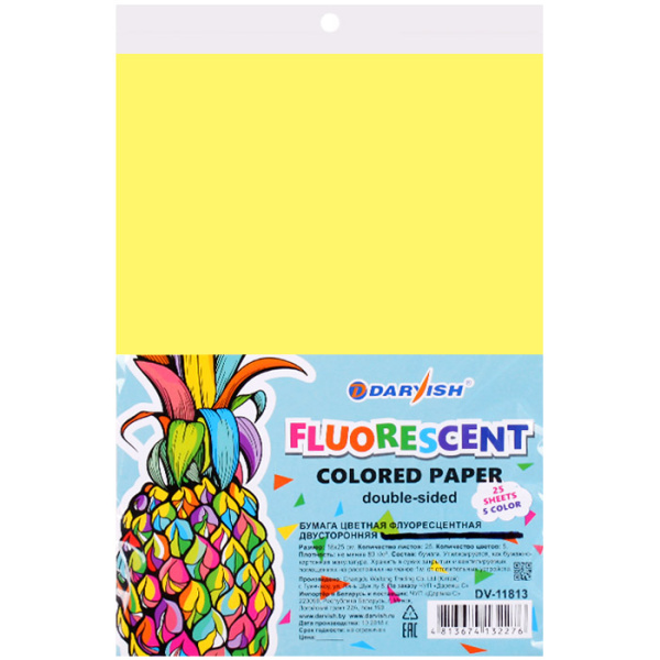 —Цветная бумага флуоресцентная А5 Darvish 25 л 5 цв двуторонняя DV-11813