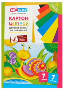 —Картон цветной А4 двустор., ArtSpace, 7л., 7цв., мелованный, в папке, Нкм7-7дв_28665