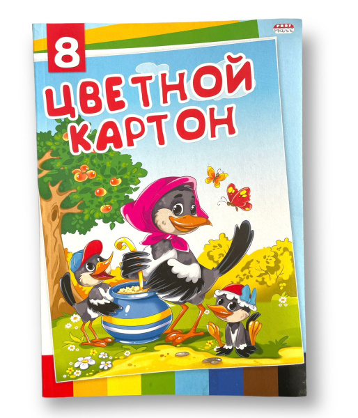 Цветной волшебный картон , А4 , 'Сорока белобока' , 8 листов , 8 цветов, 08-7489