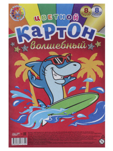 —Цветной картон волшебный'Забавная акула',A4,8л,8 цветов. 08-7674