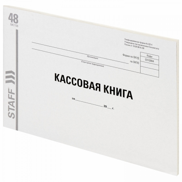 —Кассовая книга (форма КО-4) STAFF, А4, 48 л., альбомная., 203х285 мм., картон, типогр. блок, 130231