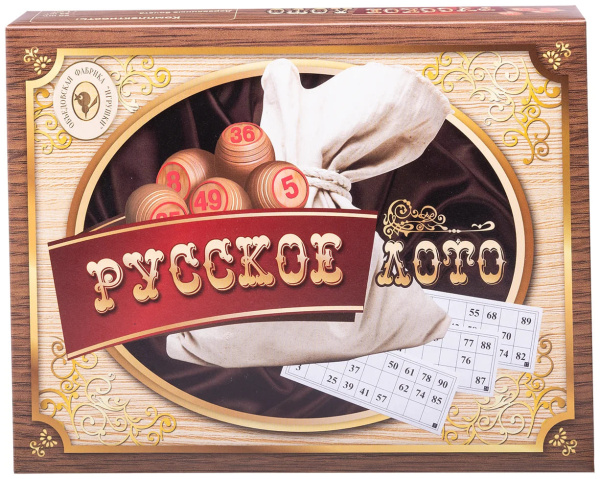 Русское лото Объедовское (250 х130 х 80 мм.)., деревянные бочонки, в коричневой  картон. уп., 052-11