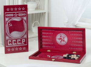 —Нарды деревянные 400х200х40, малиновые с рисунком, 406-20