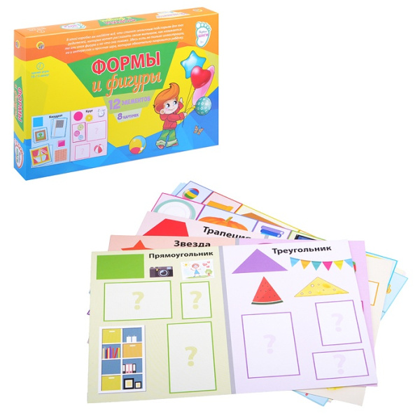 —Настольная игра Первые шаги Рыжий кот "Формы и фигуры" 12 элементов, 8 карточек, 3+, ПД-6441