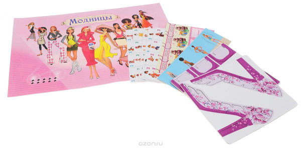 В комплект входит игровое поле, 56 карточек нарядов, 4 карточки событий, 4 карточки "Твой день рождения", 4 подставки для фишек, 4 фишки, туфелька (10 деталей), инструкция на русском языке.
