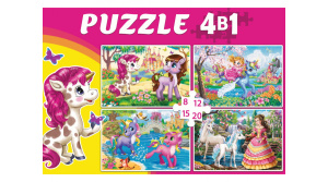 Пазлы 4 в 1 , Единороги №1 , (8,12,15,20 эл), П-8-12-15-20-7009