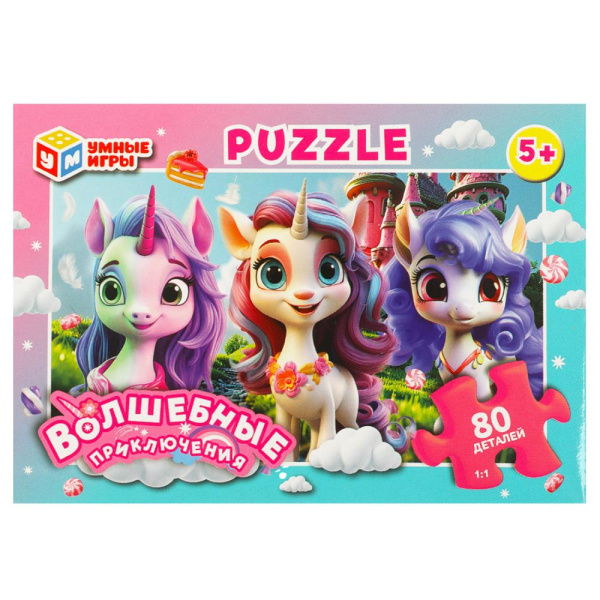 Пазлы в коробке 80 деталей. 130х90х25 мм, 'Волшебные приключения', 373681