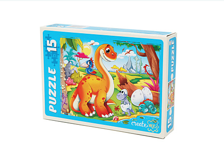 —Пазл крупный 15 эл. Рыжий Кот "Смешные динозавры", 300х215мм., 10х6см., ПУ15-0452