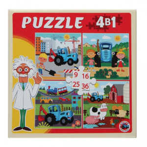 —Пазл 4 в 1 Рыжий Кот "Синий трактор №9", 150х150мм., (9,16,25,36эл.), П-1774