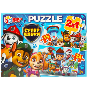 Суперщенки. Пазлы в коробке. Набор 2 в1- 15 и 24 детали. 190х140х35 мм, 363178