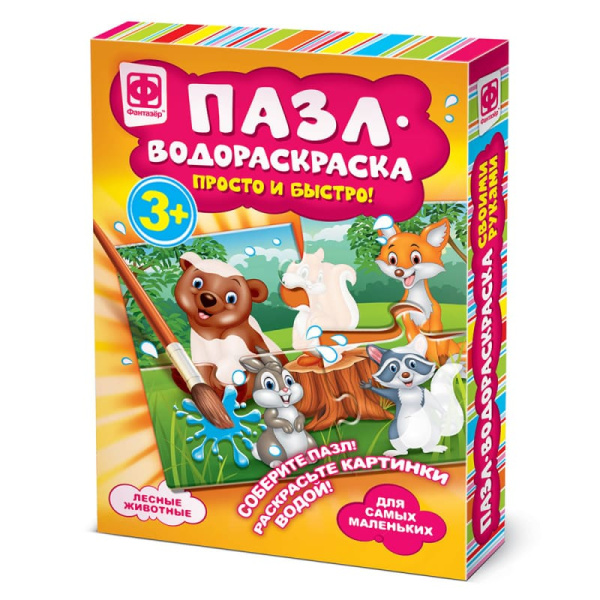 Пазл-водораскраска Фантазёр "Лесные животные", картон уп., 349012