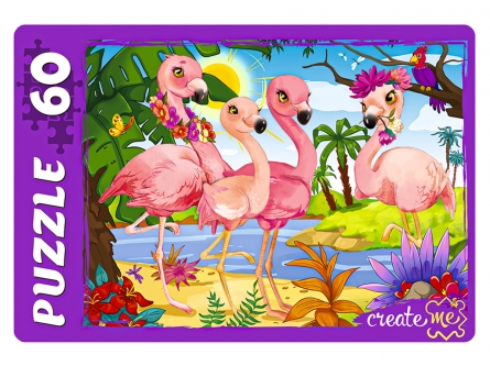 Пазл 60 эл. Рыжий Кот "Красивые фламинго №3", 330х240мм., 4х3см., ПУ60-2448