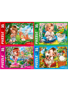 —ПАЗЛЫ 35 элементов. ДЕВОЧКА С ПУШИСТЫМИ ДРУЗЬЯМИ №6 (Арт. П35-4685) кратно 32