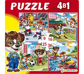 Пазл 4 в 1 Рыжий Кот "Весёлые приключения", 150х150мм., (9,16,25,36эл.), П-5810