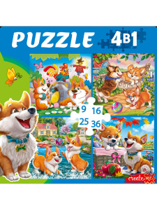 ПАЗЛЫ 4 в 1 ЗАБАВНЫЕ КОРГИ №4 (9,16, 25, 36 эл.) (Арт. П-8386)