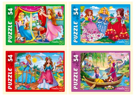 Пазлы-мини 54 эл. Рыжий кот "Мир красивых принцесс", 175 х 130 мм., П54-2101