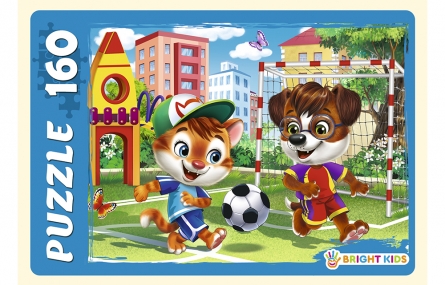 Пазл 160 эл. Рыжий Кот "Котёнок и щенок на футболе", 340х240мм., 4х3см., П160-6794