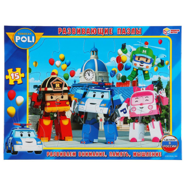 Развивающие пазлы. Робокар Поли. Пазлы в рамке. 15Д. 29х22х0,5 см, 301314
