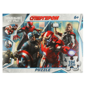 —Пазл классический в коробке. 104 детали. 190х141х35 мм, 'Супергерои', 357958