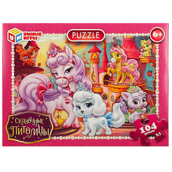 Сказочные питомцы. Пазл классический в коробке. 104 детали. 190х141х35мм. Умные игры, 359294