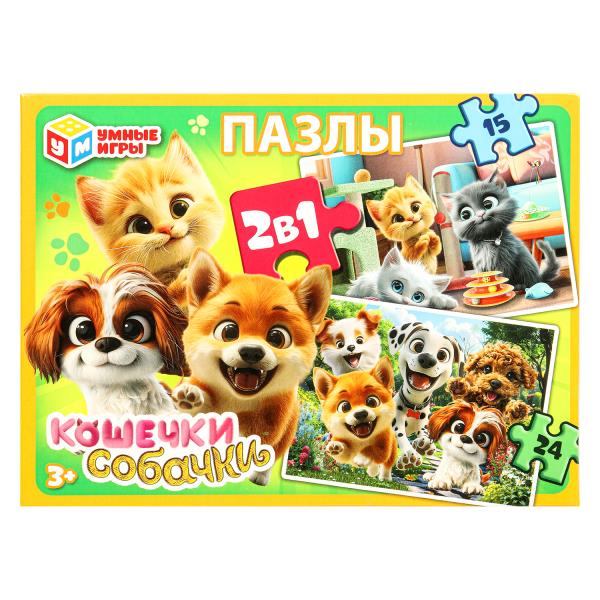 —Кошечки Собачки. Пазлы в коробке, набор 2 в 1- 15 и 24 детали. (190х140х35мм), 394103