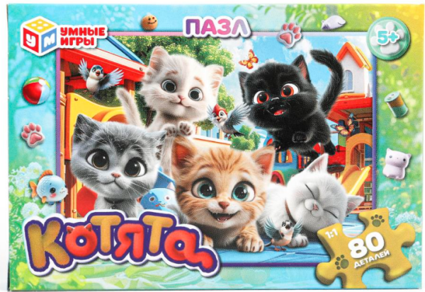 —Котята. Пазлы классические в коробке. Пазл 80 деталей. 130х90х25 мм, 387347