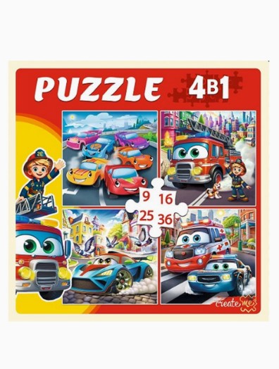 —ПАЗЛЫ 4 В 1. МАШИНКИ В ГОРОДЕ (9,16, 25, 36 эл.), П-7585