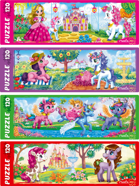 ПАЗЛЫ-ПАНОРАМА 120 элементов. ЧУДЕСНЫЕ ЕДИНОРОГИ №26 (Арт. П120-2916) кратно 8