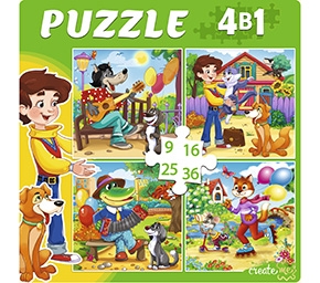 Пазл 4 в 1 Рыжий Кот "Интересные истории", 150х150мм., (9,16,25,36эл.), П-5814
