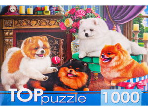 TOPpuzzle. ПАЗЛЫ 1000 элементов."Игривые шпицы", ХТП1000-4145