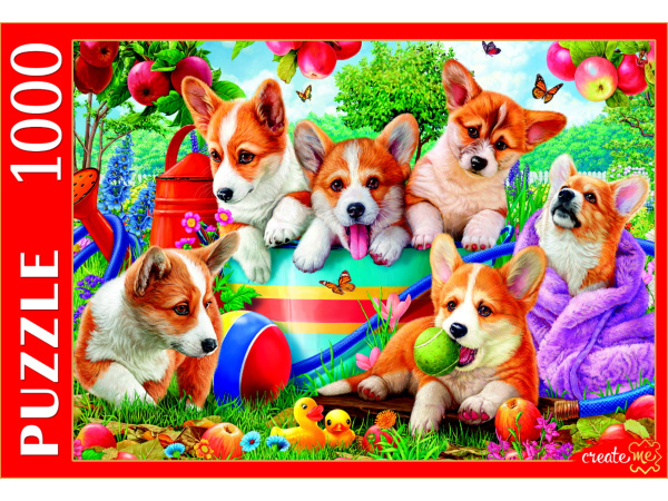 —ПАЗЛЫ 1000 элементов. ЩЕНКИ КОРГИ В САДУ, Ф1000-0757