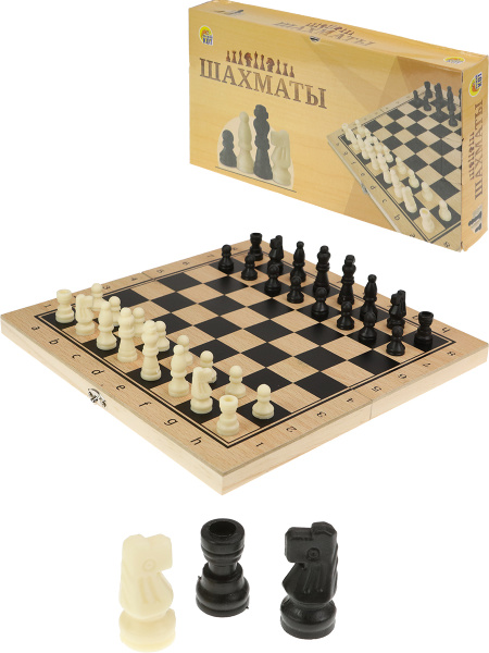 Шахматы деревянные (24х12х3 см), фигуры пластик, в коробке, ИН-1064