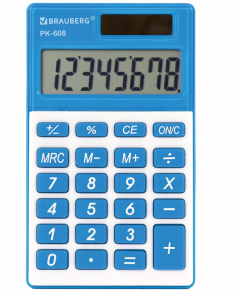 Калькулятор карманный Brauberg PK-608-BU (107х64 мм) 8 разрядов, двойное питание, синий, 250519