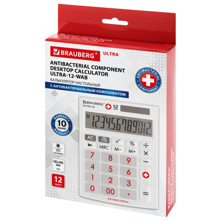 —Калькулятор настольный BRAUBERG ULTRA-12-WAB (Цвет- белый) 12 разряд. 192 х 143 мм. арт. 250506
