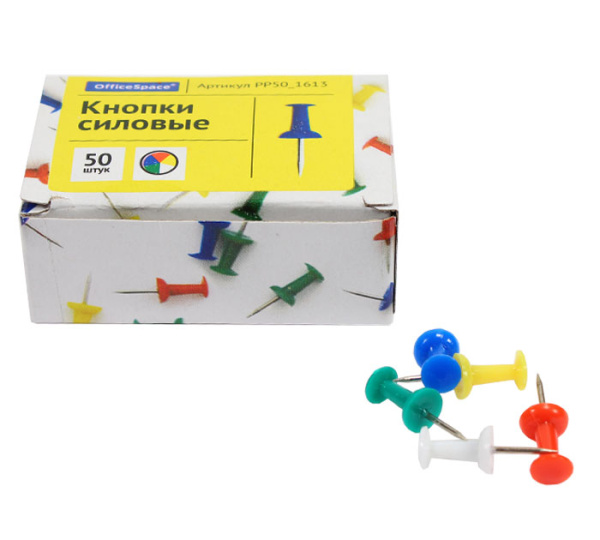 —Кнопки силовые 'OfficeSpace' цветные 50 шт , в упаковке, РР50_1613