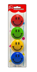 —Набор магнитов 'KWELT' для доски, 4 шт, 40 мм, смайлики ассорти, европодвес, К-9369
