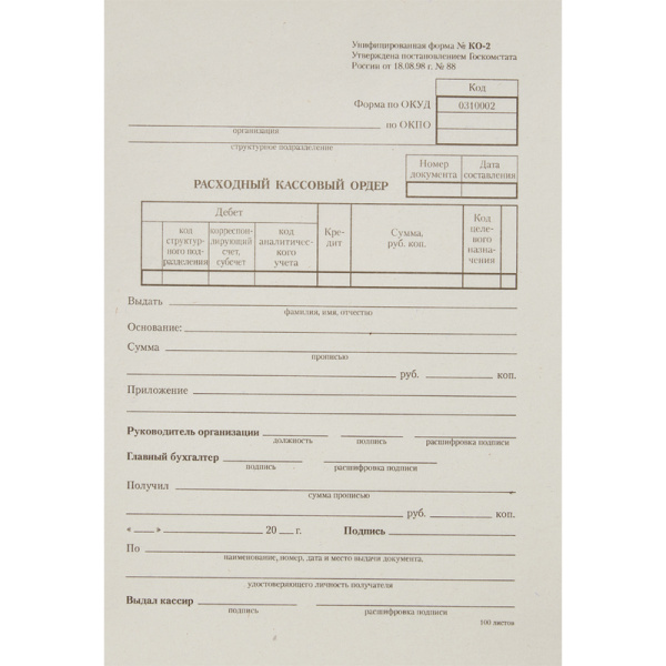 Расходный кассовый ордер А5