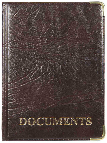 Обложка для автодокументов, иск.кожа, коричнев., тисн. золото "Documents", 2 уголка, 5,103-220