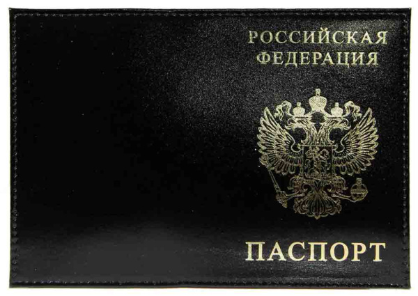 Обложка для паспорта из нат. кожи Шик, черный, тисн.золото "РОССИЯ-ПАСПОРТ-ГЕРБ", ШИК-211