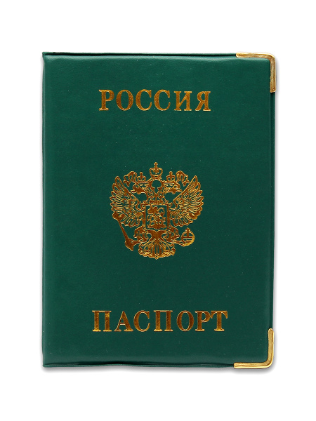 Обложка на паспорт 'Россия', зеленая с металлическими уголками, ОП-9095