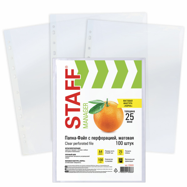 —Файлы А4 STAFF 25 мкм 100 шт 226828