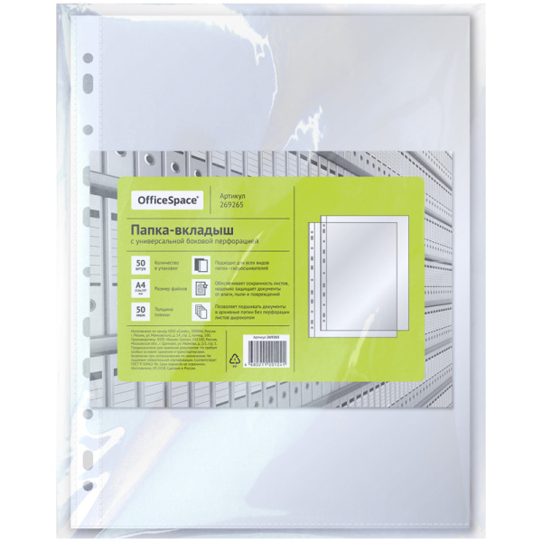 —Файлы А4 OfficeSpace 50 мкм 50 шт 269265