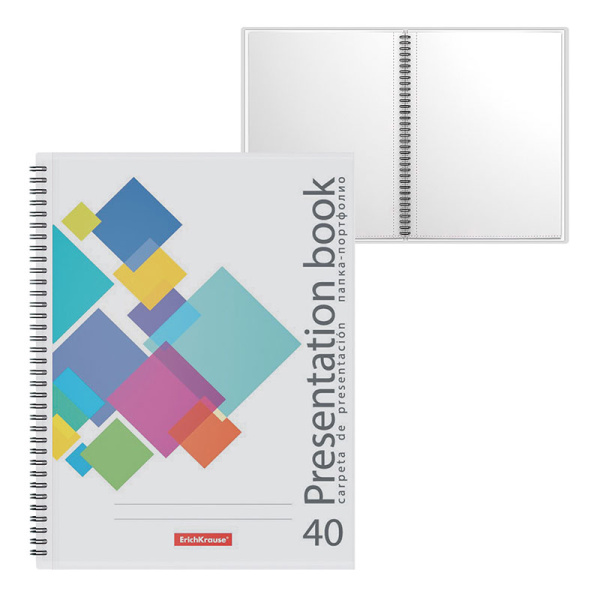 —Папка-портфолио " Erich Krause " А4 спираль 40 файлов Flying Rhombs пластик 53395