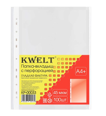 —Файлы А4, KWELT, 45 мкм, (100 шт.уп), глянцевые, KP-00033