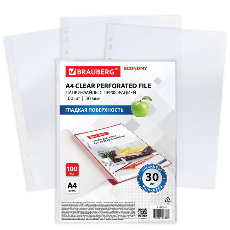 Папки-файлы перфорированные А4 ОФИСМАГ ЭКСТРА, КОМПЛЕКТ (50 шт;уп), гладкие, ПЛОТНЫЕ, 70 мкм, 272683