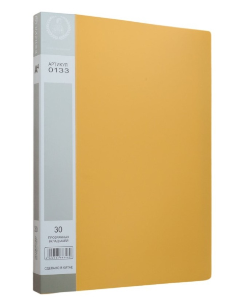—Папка с 30 прозрачными вкладышами 'Консул', А4, пластик 0,6 мм, желтый цвет, 0133